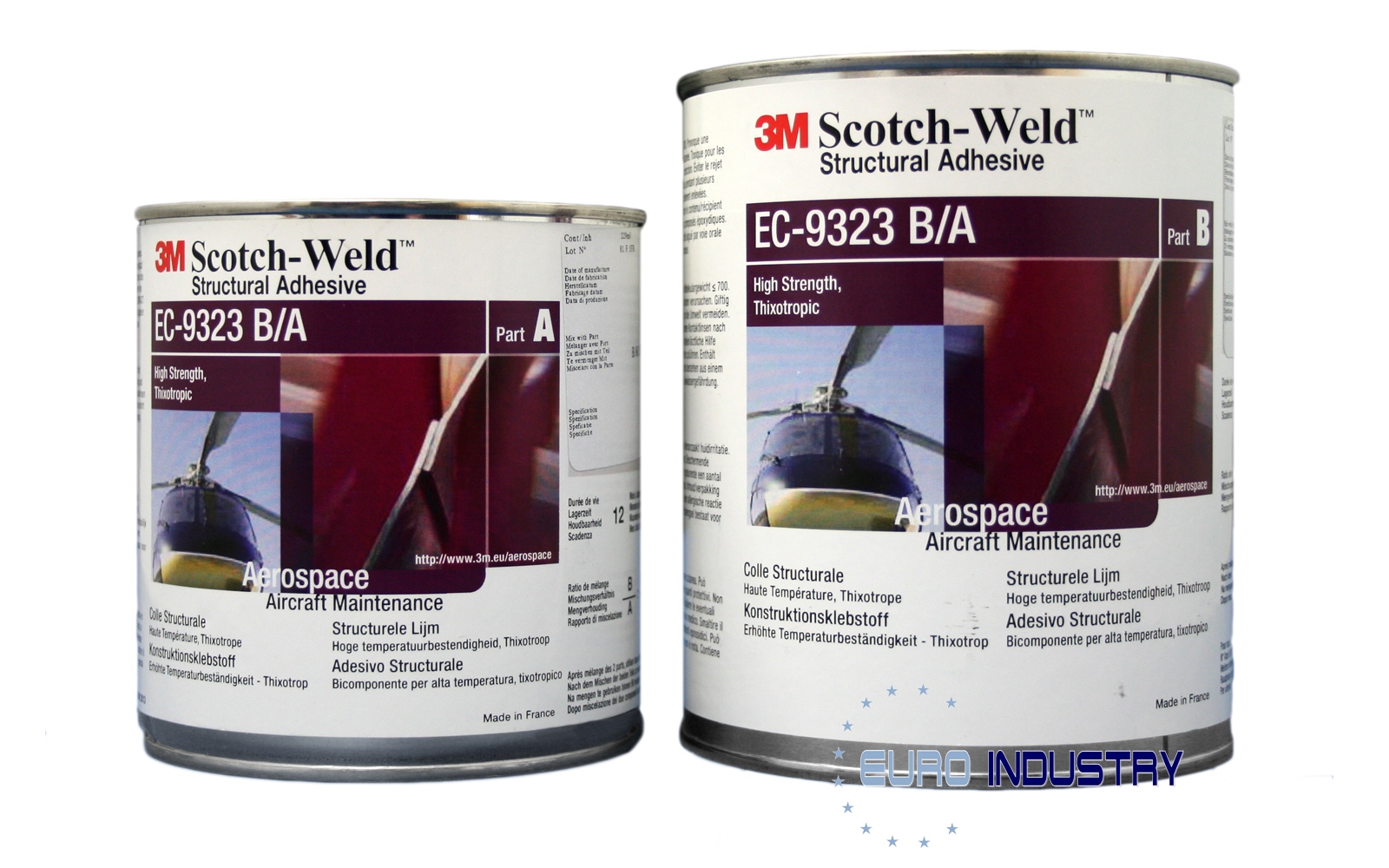 3M™ Scotch-Weld™ Struktur-Epoxidklebstoff EC-9323-2 B/A ist ein thixotroper, standfester Zweikomponenten-Epoxidklebstoff, der bei Raumtemperatur oder milder Hitze aushärtet und eine robuste, schlagfeste Strukturverbindung bildet. Es verfügt über eine hervorragende Haftung auf einer Vielzahl von Untergründen wie zMetalle, Glas, KeramikUndKunststoffe, inkl.GFKUndCFK.