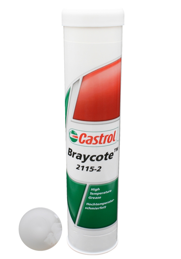 Castrol Braycote 2115-2(früher Molub-Alloy™ 2115 genannt) ist ein thermisch stabiler, hochtemperaturbeständiger synthetischer Lagerschmierstoff. Es enthält Schmierfeststoffe für einen guten Verschleißschutz und wurde entwickelt, um die Lebensdauer und Nachschmierintervalle in Hochtemperaturlagern im Vergleich zu herkömmlichen Fetten deutlich zu verlängern.