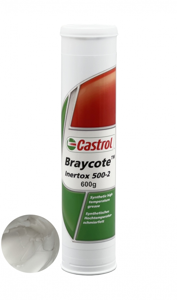 Castrol Braycote™ Inertox Range (früher Castrol Interox™ Range) sind chemisch und thermisch stabile Hochtemperaturfette auf vollsynthetischer Basis. Sie werden universell zur Langzeitschmierung von Wälz- und Gleitlagern eingesetzt, insbesondere wenn sie rauen Umgebungsbedingungen ausgesetzt sind. Das Sortiment besteht aus Braycote Inertox 400-1 (früher Inertox Light genannt), Braycote Inertox 500-2 (früher Inertox Medium genannt), Braycote Inertox 240-2 (früher Inertox Medium 150 genannt) und Braycote Inertox 2 (früher Inertox Heavy genannt).