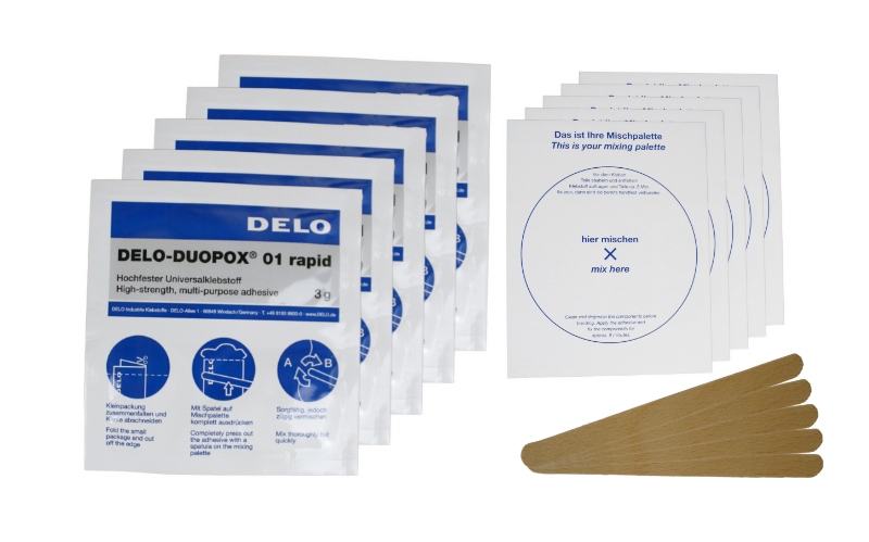 - Im Set enthalten: 1 × 3g Doppelkammerbeutel (Harz A + Härter B), 1 × Papiermischpalette, 1 × Holzspatel