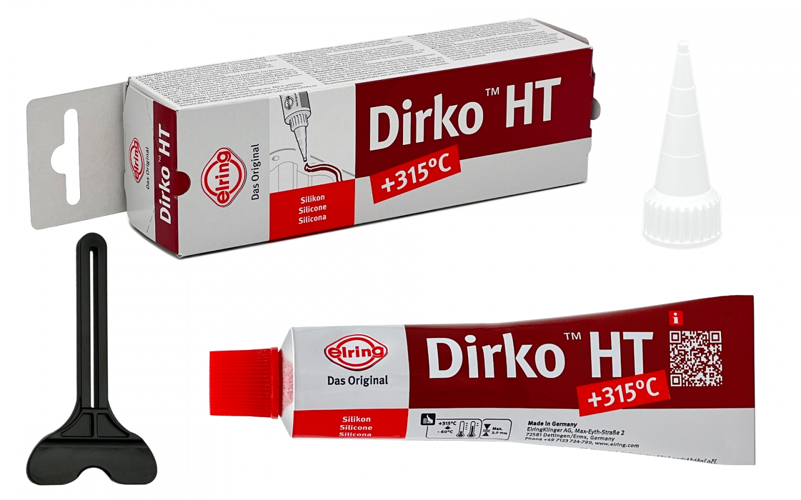 - Dirko HT vereint den Vorteil der extremen Festigkeit von Dirko mit einem zusätzlichen Plus – der Hochtemperaturbeständigkeit (HT). Es kann problemlos für „extrem heiße“ Dichtungsfugen eingesetzt werden, bei denen Dauertemperaturen von +250 °C auftreten.
