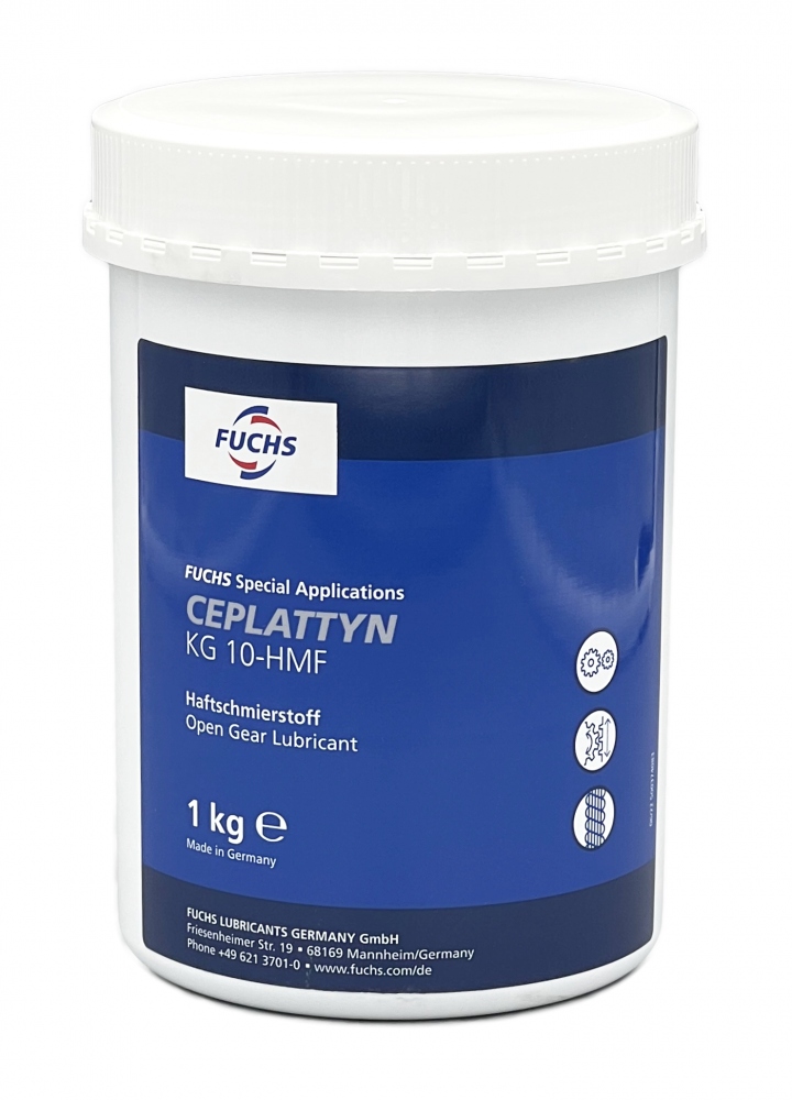 CEPLATTYN KG 10 HMFbasiert auf einem hochwertigen Basisöl, verdickt mit Aluminiumkomplexseife (NLGI-Klasse 0-00). Das Produkt enthält kolloidalen Graphit höchster Reinheit und Feinheit und zusätzlich ein sorgfältig abgestimmtes Additivpaket, das chlorfrei ist und keine Schwermetalle enthält, sowie Haftzusätze.