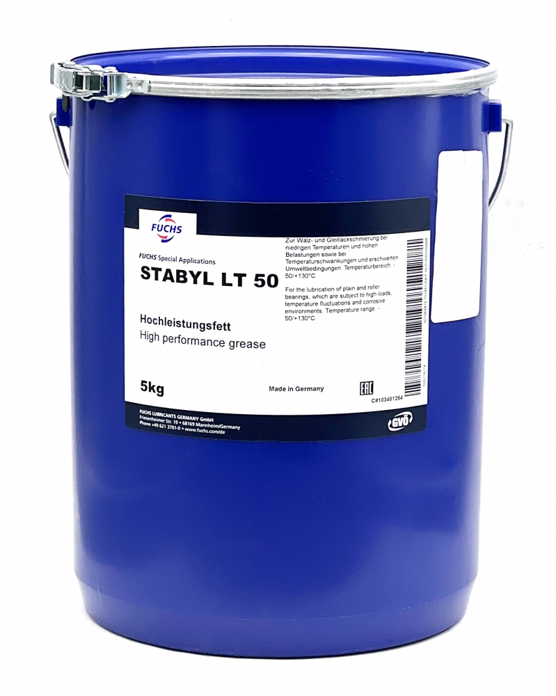 • STABYL LT 50 wird zur Schmierung von Gleit- und Wälzlagern eingesetzt, die niedrigen Temperaturen, hohen Belastungen, Temperaturschwankungen und schwierigen Umgebungsbedingungen ausgesetzt sind, beispielsweise im allgemeinen Maschinenbau, in der chemischen Industrie, in der Eisen- und Stahlindustrie, im Baumaschinenbau und in der Automobilindustrie.