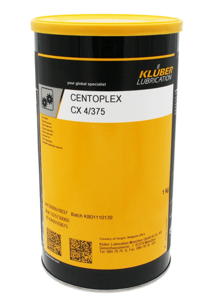 - CENTOPLEX CX 4/375 ist ein Spezialschmierfett auf Basis von Mineralöl und Lithiumseife. Es handelt sich um ein sehr weiches Fett der Konsistenzklasse 0.