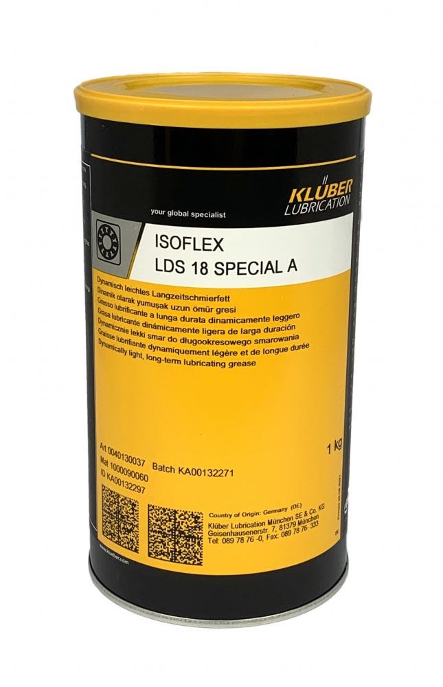 - ISOFLEX LDS 18 SPECIAL A ist ein dynamisch leichtes Langzeitfett für Gleit- und Wälzlager. Es besteht aus Esteröl, Mineralöl und Lithiumseife. Das Produkt ist alterungs-, oxidations- und wasserbeständig und schützt zuverlässig vor Korrosion