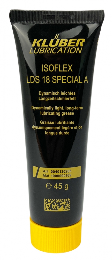 - ISOFLEX LDS 18 SPECIAL A ist ein dynamisch leichtes Langzeitfett für Gleit- und Wälzlager. Es besteht aus Esteröl, Mineralöl und Lithiumseife. Das Produkt ist alterungs-, oxidations- und wasserbeständig und schützt zuverlässig vor Korrosion