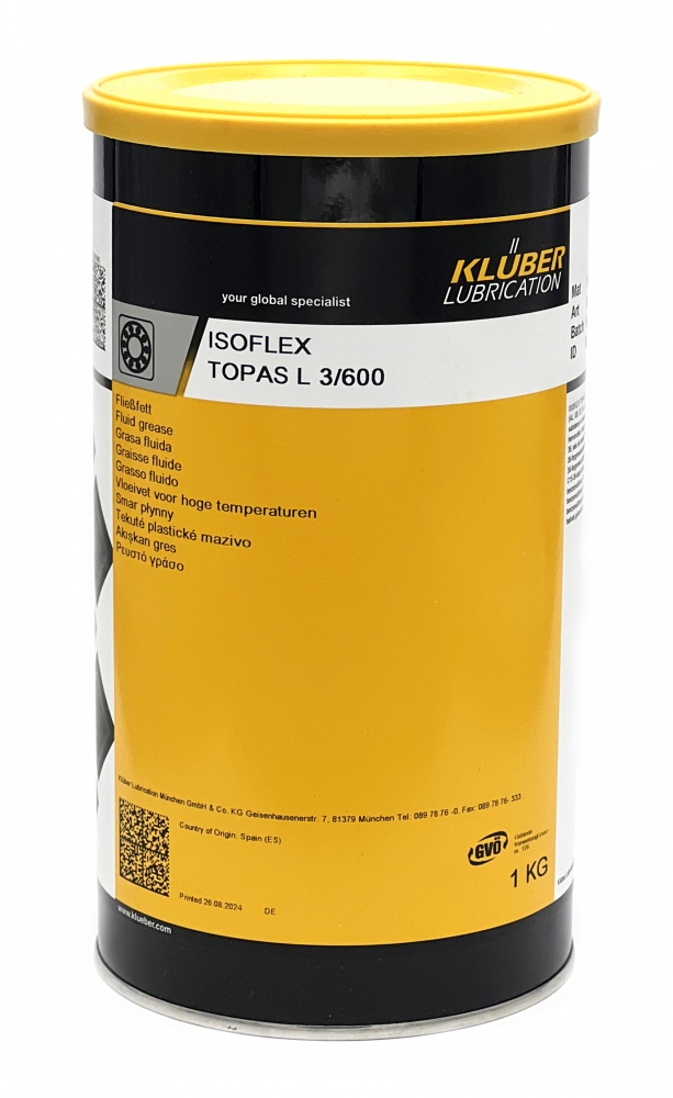 - ISOFLEX TOPAS L 3/600 ist ein synthetisches Fließfett für einen weiten Temperatureinsatzbereich. Es besteht aus synthetischem Kohlenwasserstofföl und Lithiumseife. ISOFLEX TOPAS L 3/600 ist oxidations- und alterungsbeständig, hat ein gutes Netzvermögen und schützt vor Korrosion.