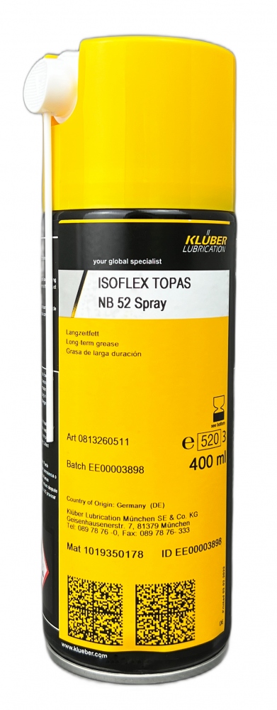 - Klüber ISOFLEX TOPAS NB 52 und ISOFLEX TOPAS NB 152 sind Wälz- und Gleitlagerfette auf Basis eines synthetischen Kohlenwasserstofföls und einer Bariumkomplexseife. Der in den Fetten ISOFLEX TOPAS NB52 und 152 verwendete spezielle Bariumseifen-Verdicker bietet im Gegensatz zu anderen seifenbasierten Verdickern ein gutes Lasttragevermögen sowie Beständigkeit gegenüber Wasser und Umgebungsmedien. Beide Produkte weisen einen guten Korrosionsschutz sowie Oxidations- und Alterungsstabilität auf. Die Bariumkomplexseife von Klüber ist ELINCS-registriert und von der GASG (Global Automotive Stakeholders Group) zugelassen.