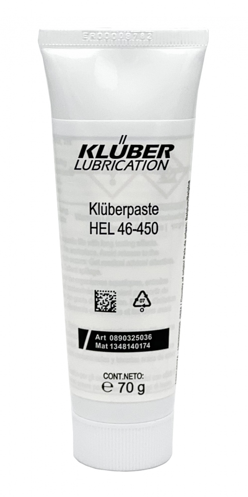 • Klüberpaste HEL 46-450 ist eine schwarze Heißschraubpaste für hochlegierte Stähle. Es enthält vollsynthetische Polyalkylenglykol- und Ester-Grundöle sowie eine Kombination anorganischer Festschmierstoffe.