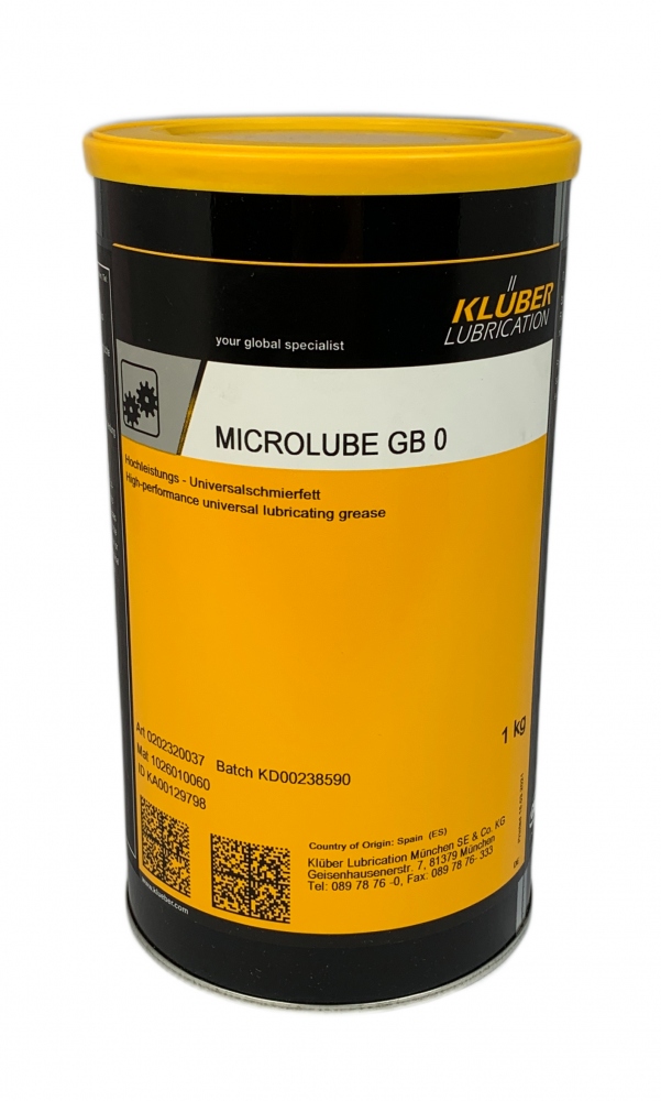 MICROLUBE GB 0 wurde speziell für hochbelastete Reibstellen und Mischreibungsverhältnisse entwickelt. Es handelt sich um ein Universalfett zur Schmierung von Exzenterpressen (z. B. Fabrikat Müller-Weingarten), hochbelastbaren Stirn- und Kegelgetrieben mit Stahl/Stahl-Komponenten (z. B. nicht öldichte Getriebemotoren), Gleitbahnen, Führungen und sumpfgeschmierten Wälzlagern.