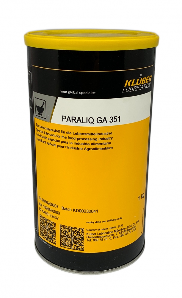in dieser Angelegenheit Hilfe zu leisten - PARALIQ GA 351 ist NSF H1 registriert und entspricht daher FDA 21 CFR § 178.3570. Der Schmierstoff wurde für den gelegentlichen Kontakt mit Produkten und Verpackungsmaterialien in der Lebensmittel-, Kosmetik-, Pharma- oder Tierfutterindustrie entwickelt. Der Einsatz von PARALIQ GA 351 kann zur Erhöhung der Zuverlässigkeit Ihrer Produktionsprozesse beitragen. Wir