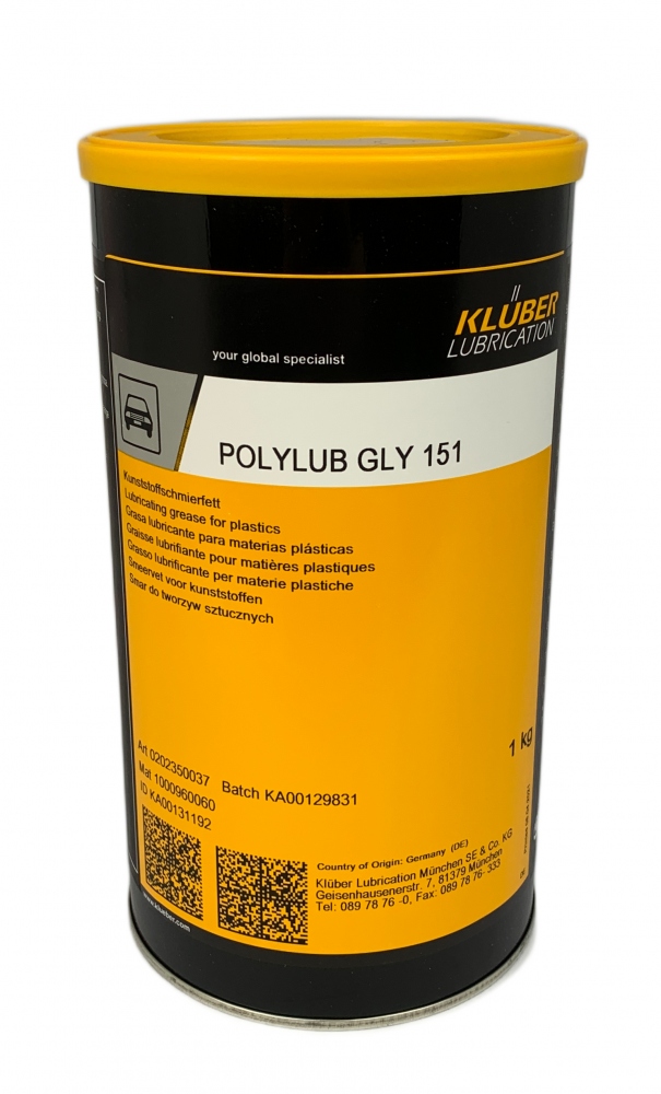- Die Produktserie POLYLUB GLY 151 basiert auf einem synthetischen Kohlenwasserstofföl, Mineralöl und spezieller Lithiumseife. Es besteht aus drei Schmierfetten, die Reibung und Verschleiß in Gleitlagern, Gleitbahnen und Kleingetrieben aus Kunststoff reduzieren.