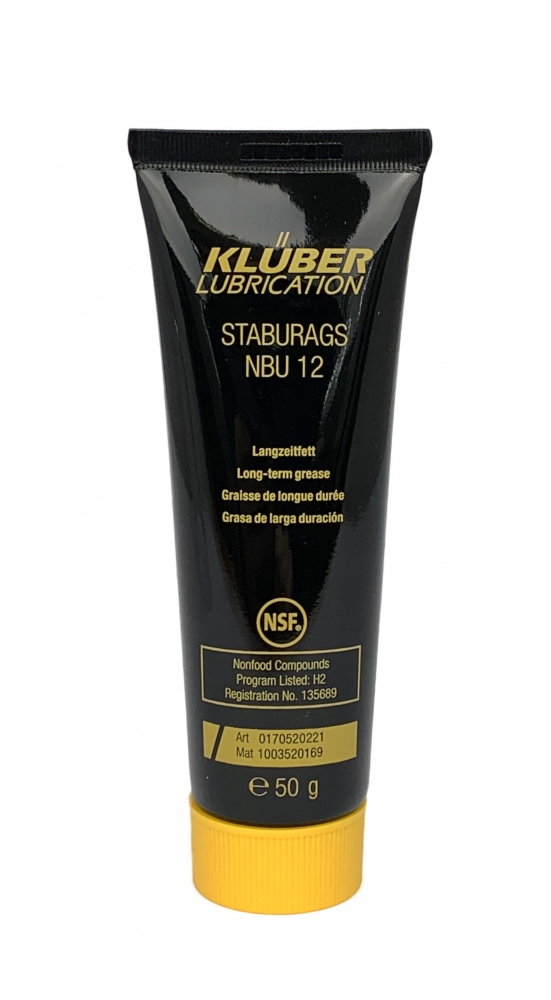 - STABURAGS NBU 12 ist ein Schmierfett auf Basis von Mineralöl und Bariumkomplexseife. Dieses Produkt widersteht sehr hohen spezifischen Flächenpressungen und gewährleistet so einen guten Verschleißschutz. Darüber hinaus ist es beständig gegen Korrosion, Wasser und viele verdünnte Laugen und Säuren