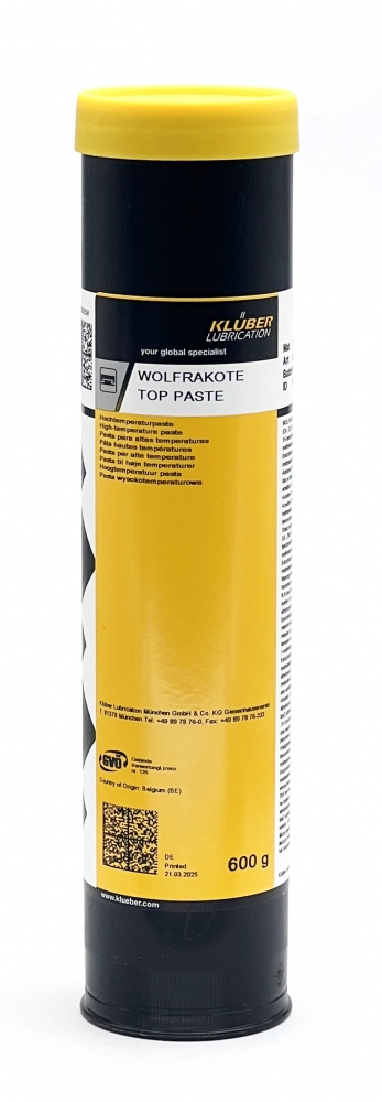 Bei „Normaltemperaturen“ ist WOLFRAKOTE TOP PASTE eine effiziente Hochdruck-Schmier- und Montagepaste mit hoher Haftfestigkeit auf Metallen. Bei dauerhaft hohen Temperaturen verbleiben die in WOLFRAKOTE TOP PASTE enthaltenen Festschmierstoffe im Reibkontaktbereich und wirken adhäsivem Verschleiß durch Festfressen oder Stoffübergang entgegen.