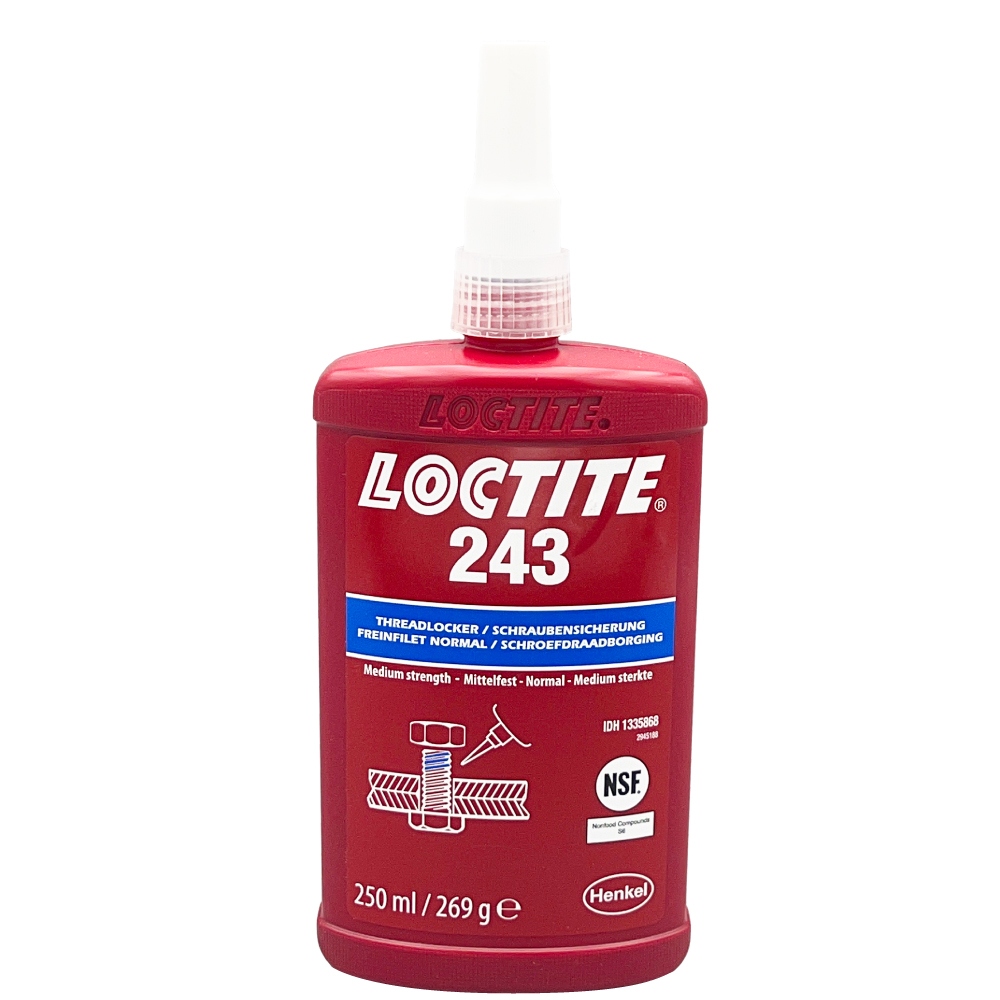 LOCTITE® 243ist ein Allzweck-Schraubensicherungsmittel, das eine mittelfeste Verbindung bietet. Es ist nachweislich tolerant gegenüber geringfügigen Verunreinigungen durch Industrieöle, z. B. Motoröle, Korrosionsschutzöle und Schneidflüssigkeiten.