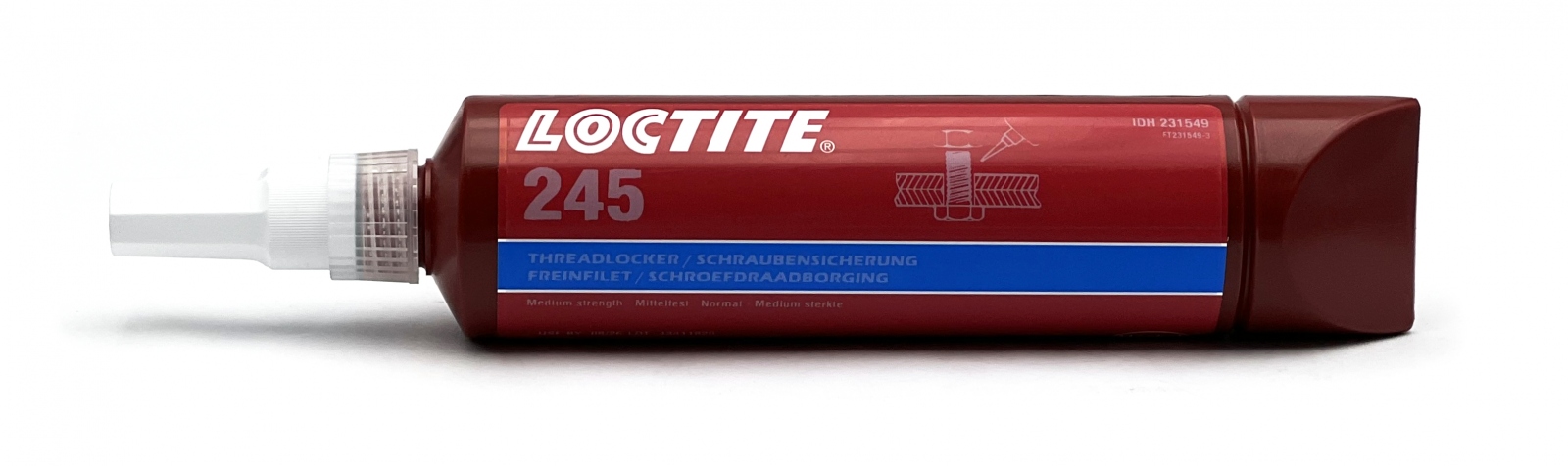 LOCTITE® 245ist ein Methacrylat-Schraubensicherungsklebstoff mittlerer Stärke und mittlerer Viskosität, der für große Gewinde bis zu einer Größe von M80 entwickelt wurde. Das Produkt ist für Verbindungselemente vorgesehen, die eine normale Demontage mit handelsüblichen Handwerkzeugen erfordern (Losbrechmoment beträgt 13 Nm). Das Produkt ist für Metalle wie Stahl, Messing und Edelstahl geeignet.