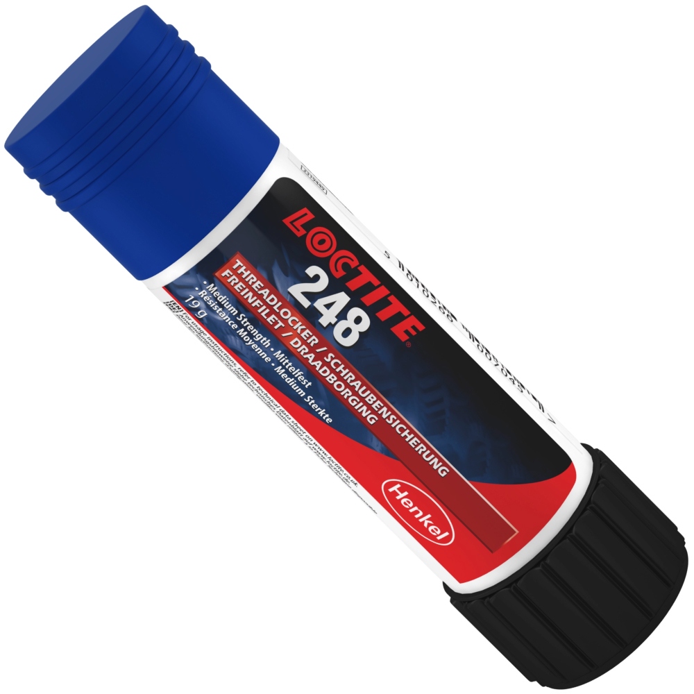 LOCTITE® 248ist eine Allzweck-Schraubensicherung mit mittlerer Haftfestigkeit. Dieses Produkt ist im praktischen Stick-Format erhältlich. Dieses Schraubensicherungsmittel sichert und versiegelt Schrauben, Muttern und Stehbolzen, um ein Lösen aufgrund von Vibrationen zu verhindern. Das Produkt funktioniert auf allen Metallen, einschließlich passiven Substraten wie Edelstahl, Aluminium und plattierten Oberflächen. Es ist nachweislich tolerant gegenüber geringfügigen Verunreinigungen durch Industrieöle, z.B. Motoröle, Korrosionsschutzöle und Schneidflüssigkeiten.