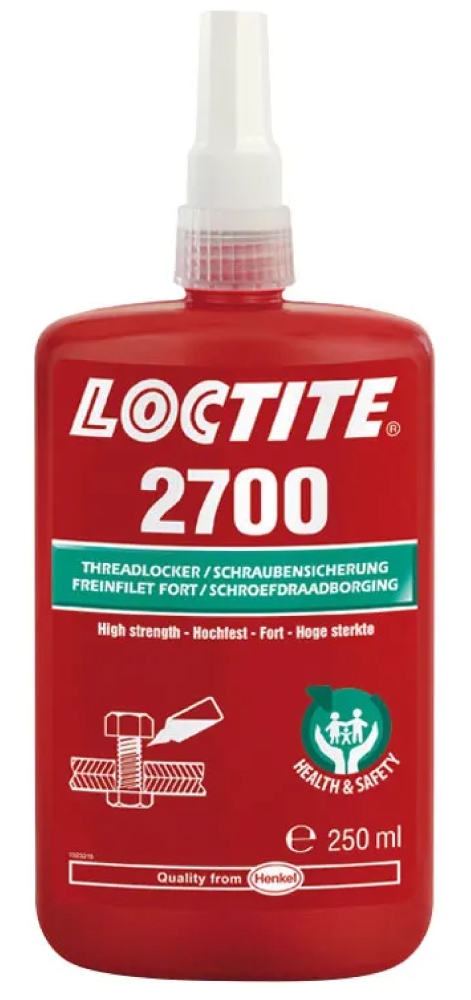 LOCTITE® 2700ist eine hochfeste Schraubensicherung für maximale Wirksamkeit beim Sichern und Abdichten von Schrauben, Muttern und Stehbolzen, um ein Lösen aufgrund von Vibrationen zu verhindern. Das Produkt dient zur dauerhaften Sicherung von Baugruppen, die sich nicht lösen dürfen. Es funktioniert auf allen Metallen, einschließlich passiven Substraten. Leichte Verunreinigungen werden toleriert.