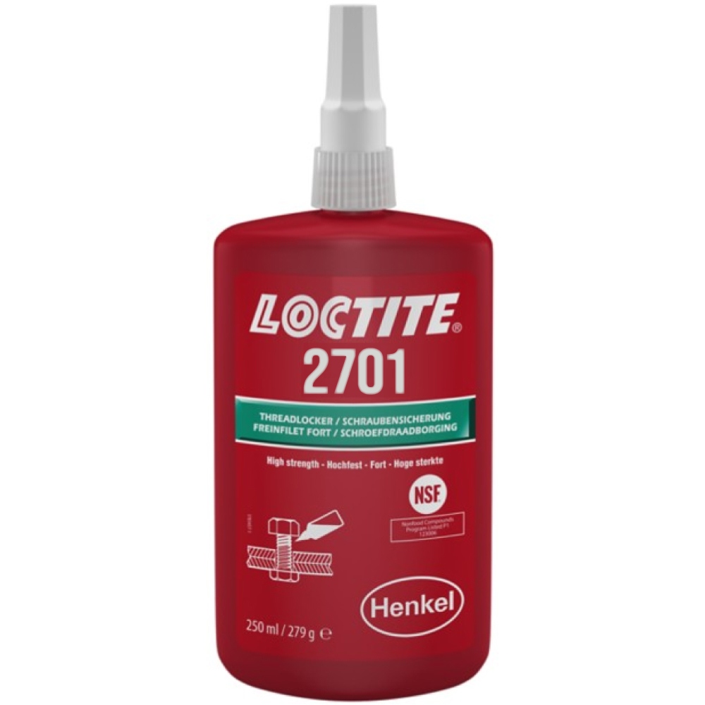 LOCTITE® 2701ist ein grüner, niedrigviskoser Schraubensicherungsklebstoff auf Methacrylatbasis mit hoher Festigkeit, insbesondere für chromatierte Oberflächen.