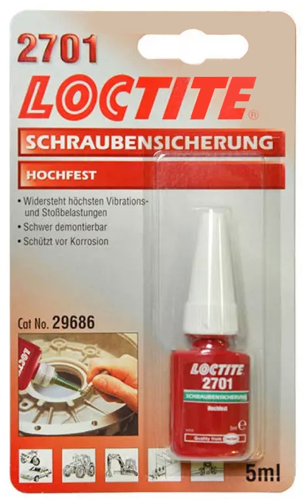 LOCTITE® 2701ist ein grüner, niedrigviskoser Schraubensicherungsklebstoff auf Methacrylatbasis mit hoher Festigkeit, insbesondere für chromatierte Oberflächen.