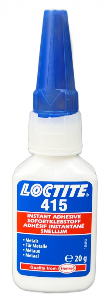 LOCTITE® 415ist ein transparenter, farbloser, hochviskoser Sofortklebstoff auf Methylbasis. Gut geeignet für Metalle und geeignet für Gummi und Kunststoff, in Kombination mit Primer auch für Polyolefine geeignetLOCTITE® SF 770 oder LOCTITE® SF 7239. Die Haltezeit beträgt 20 – 40 Sekunden.
