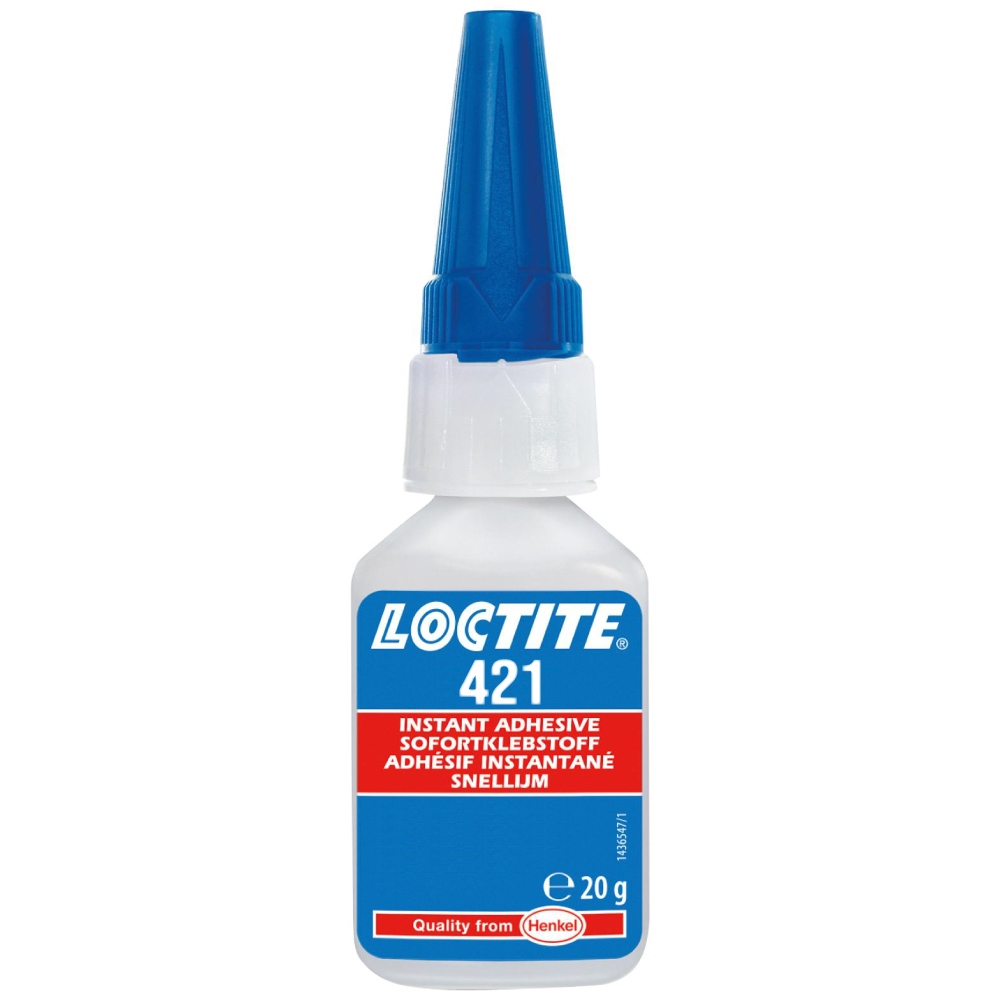 LOCTITE® 421ist ein klarer, farbloser bis strohgelber, 1-komponentiger, mittelviskoser, flüssiger Cyanacrylatklebstoff zum Verkleben schwer zu verklebender Materialien, die eine gleichmäßige Spannungsverteilung und eine hohe Zugscherfestigkeit erfordern.