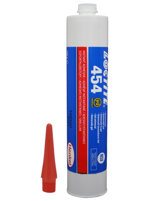 - Die Gelkonsistenz ermöglicht eine Überkopf- und vertikale Anwendung. LOCTITE 454 eignet sich auch zum Verkleben von porösen Materialien wie Holz, Papier, Leder und Stoff.