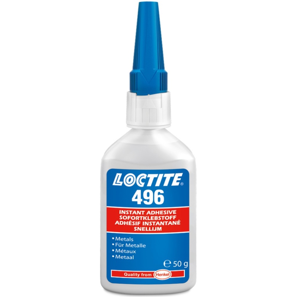 LOCTITE® 496ist ein transparenter, farbloser, niedrigviskoser Allzweck-Sofortklebstoff auf Methylbasis, der sich besonders zum Kleben von Metallen eignet. Weitere zu verklebende Materialien sind Kunststoffe und Gummi sowie Polyolefine (in Kombination mit Primer).LOCTITE® SF 770oderLOCTITE® SF 7239).