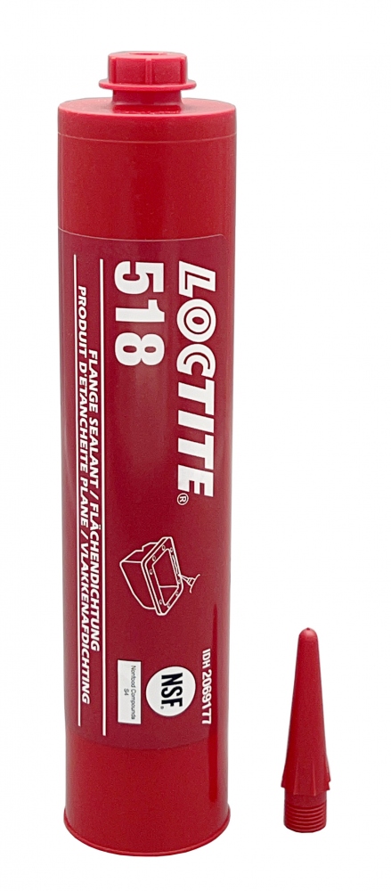 Loctite 518 ist ein anaerobes Dichtungsmaterial, das für den Einsatz auf starren Flanschflächen aus Eisen, Aluminium und Stahl entwickelt wurde. Es härtet aus, wenn es unter Luftabschluss zwischen eng anliegenden Metalloberflächen eingeschlossen wird.