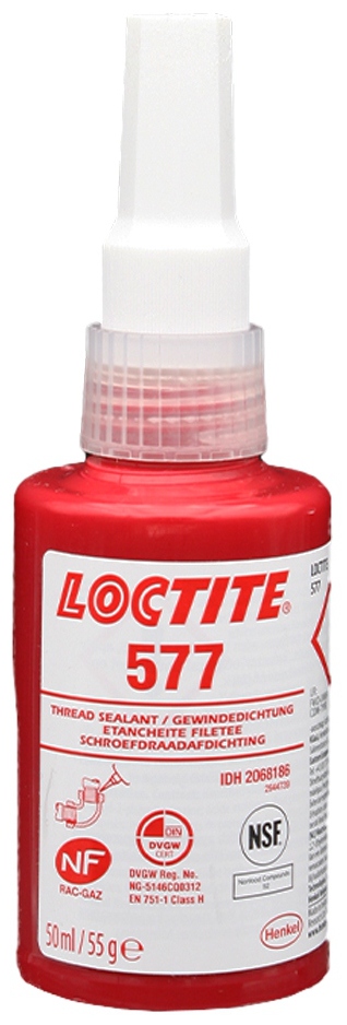 Loctite® 577ist ein mittelfestes, thixotropes Allzweck-Gewindedichtmittel für gerade auf gerade und gerade auf konische Gewindeverbindungen. Füllt den Raum zwischen Gewindeteilen und dichtet und verriegelt gleichzeitig.