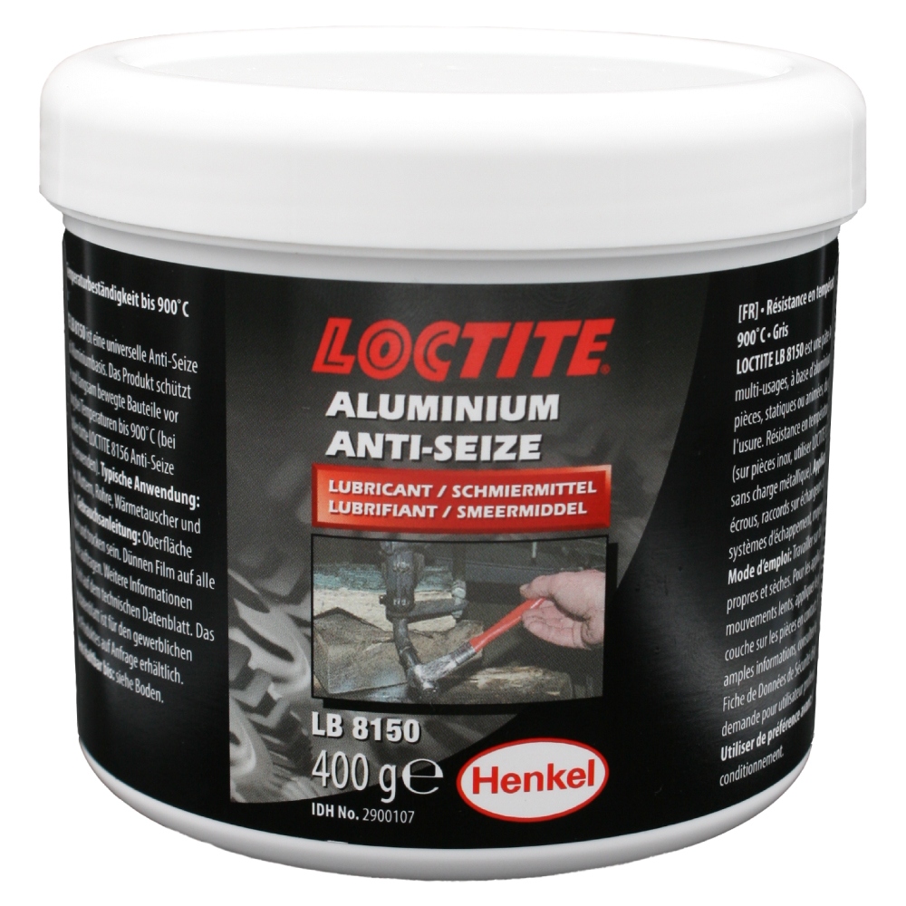LOCTITE® LB 8150 ist eine Anti-Seize-Schmierpaste, die mit Graphit und EP-Additiven (Extreme Pressure) angereichert ist. LOCTITE LB 8150 ist ein Schmiermittel auf Silber-, Aluminium- und Erdölbasis, das inert ist und bei extremer Hitze oder Kälte weder verdunstet noch aushärtet.
