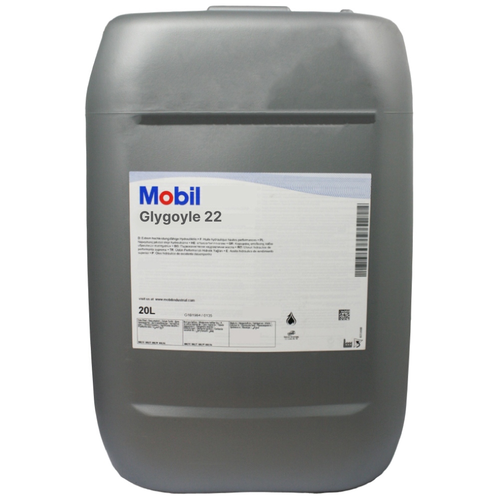 Mobil Glygoyle™ 22Hochleistungsschmierstoff auf BasisPolyalkylenglykol ()ist für den industriellen Einsatz geeignet Getriebesysteme, Lager, Undzirkulierende Systemeunter extremen Bedingungen, wie zPapiermaschinen, Kunststoffkalender, oderKompressoren.