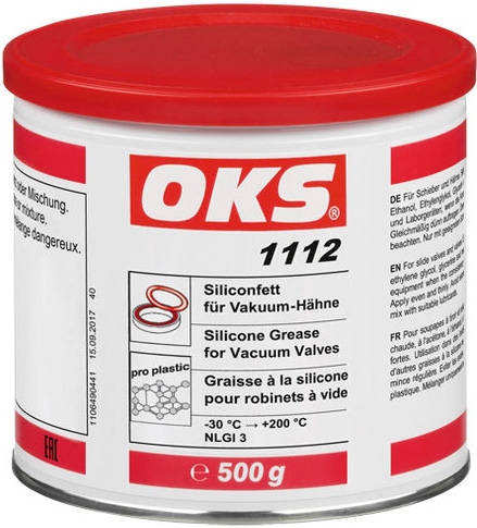 - Schmierung von Verschlussvorrichtungen und Hähnen sowie Schliffverbindungen in Industrievakuum- und Laborgeräten, wenn die Konsistenz anderer OKS-Silikonfette nicht ausreicht