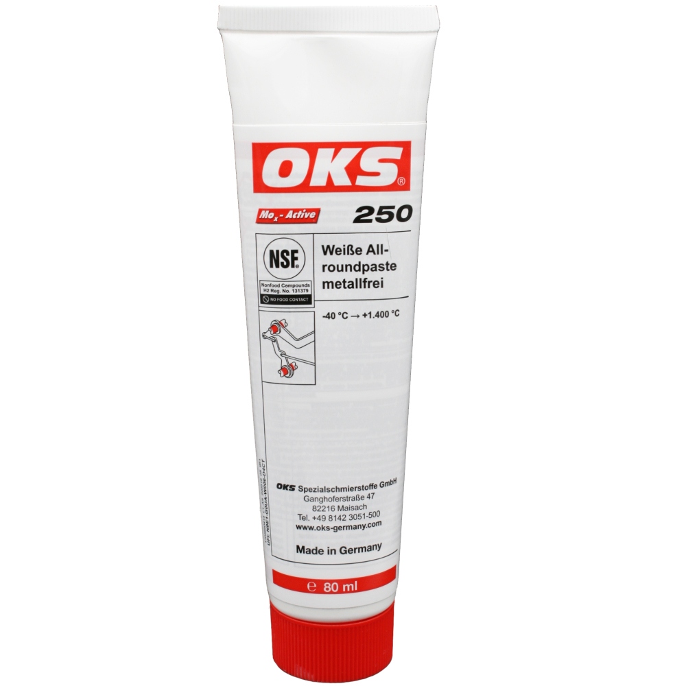 OKS 250 ist eine Hochtemperaturpaste auf Keramikbasis zur Schmierung hochbelasteter Gleitflächen.
