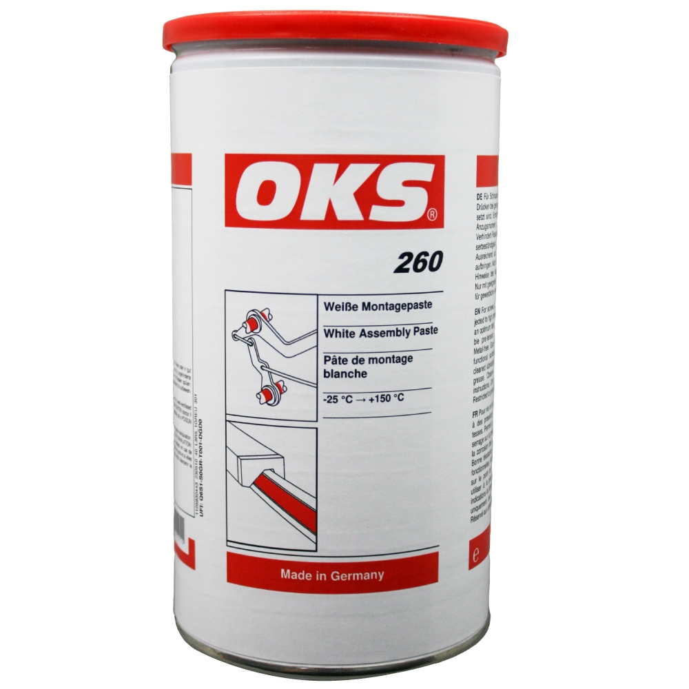 OKS 260ist eine weiße Montagepaste zur Schmierung von Gleitstellen zur Vermeidung von Reibungskorrosion.