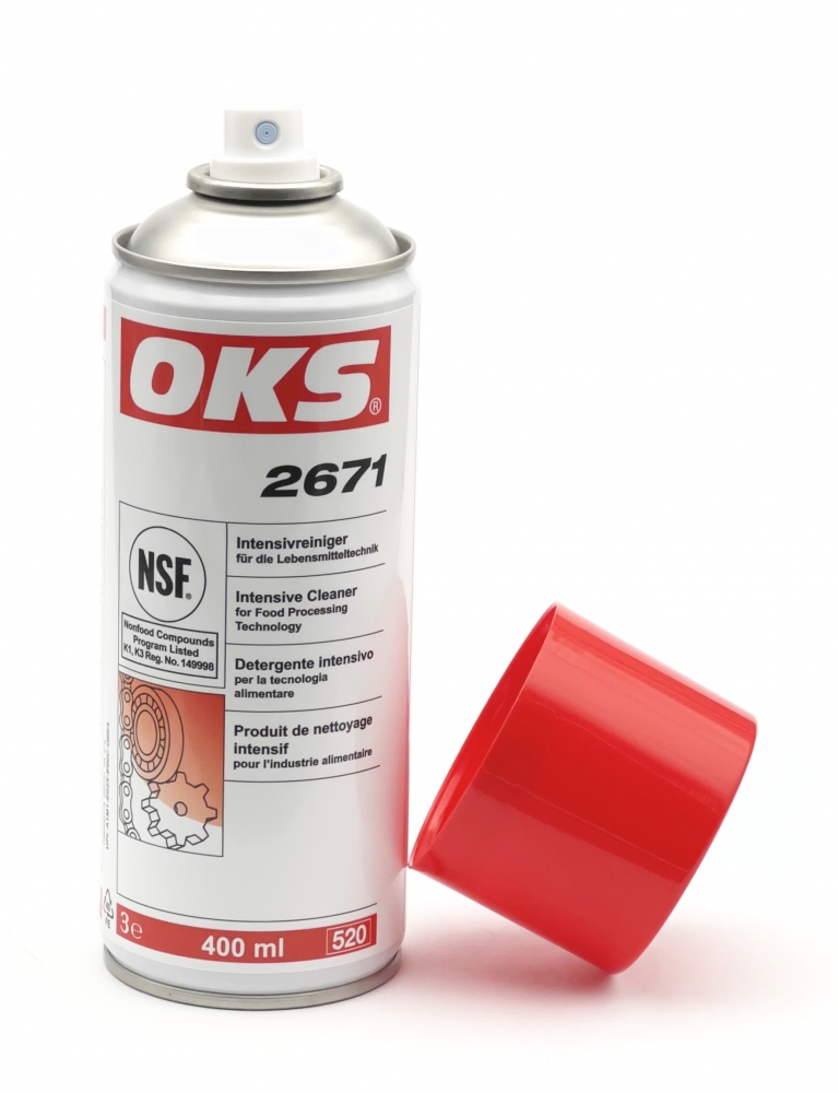 OKS 2671 Spray ist ein hochwirksamer Reiniger auf Lösungsmittelbasis für die Lebensmittelindustrie (NSF K1 K3 registriert).