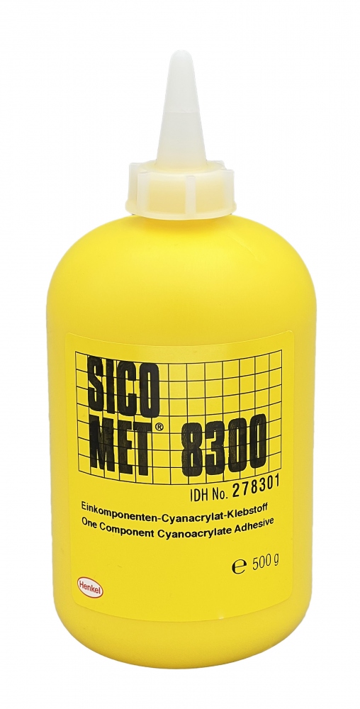 Klarer Cyanacrylat-Sofortklebstoff für hochfeste Verklebungen von Kunststoffen und GummiSICOMET® 8300 ist einklar, niedrigviskos, Ethylcyanacrylat-Kleber….