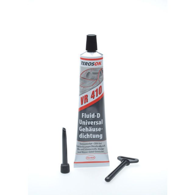 TEROSON® VR 410 (bekannt als Fluid D) ist einnicht aushärtende, pastöse Dichtungsmasseauf Kunstharzbasis, konzipiert fürAbdichtung von Gehäusen und Flanschen. Es bleibt dauerhaft plastisch, ist leicht demontierbar und eignet sich hervorragend als Ergänzung zu Volldichtungen auf grob bearbeiteten Metalloberflächen.