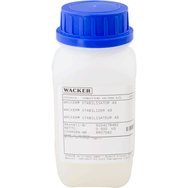 WACKER® STABILIZER 43 ist eine farblose, trübe, mittelviskose Flüssigkeit mit schwachem Geruch.